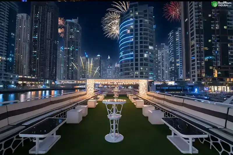 Are you planning to celebrate this New Year’s Eve in a unique and memorable way? Then our New Year’s Eve Luxury Dinner Cruise in Dubai is just what you’re looking for. Add a touch of glamour to your celebration as you sail through the glittering waters of Dubai. What could be better than enjoying a luxurious dinner cruise to welcome the New Year in style? Our exclusive cruise promises an unforgettable night filled with joy, elegance, and celebration.