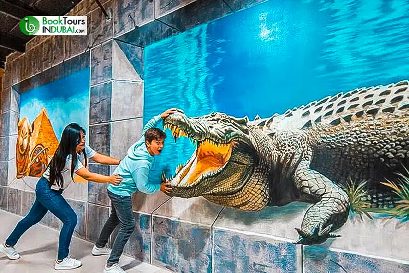 The best part of 3D World Selfie Museum Dubai Tickets is traveling into a dense tropical forest and posing with tigers and elephants. You may get photographed by a bear or almost be swallowed by an alligator. It’s all happening here at the Animal Kingdom!