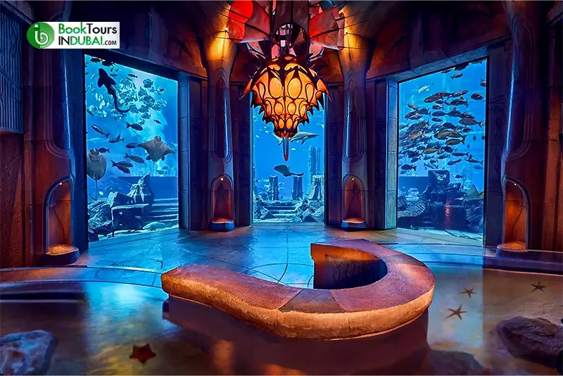 The fun gets doubled as you visit the Lost Chambers Aquarium, which is a part of this combo activity. It is a water paradise and home to almost 65,000 exotic water species. Besides, you can swim through the amazing coral reefs and ruins to feel ecstatic. The colorful fish, unique sea creatures, and stingrays swimming through the underwater tunnel look truly amazing.
