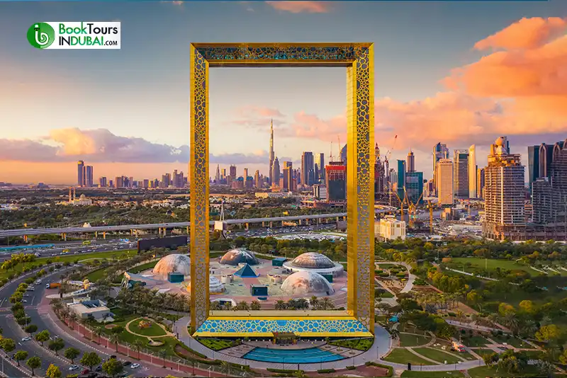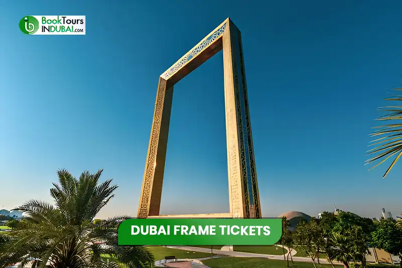 Your Dubai Frame tickets from Book Tours in Dubai include entry to the Dubai Frame, access to two museums- Dubai Past Gallery and Dubai Future Gallery, and a visit to the glass walk bridge on the Sky Deck.